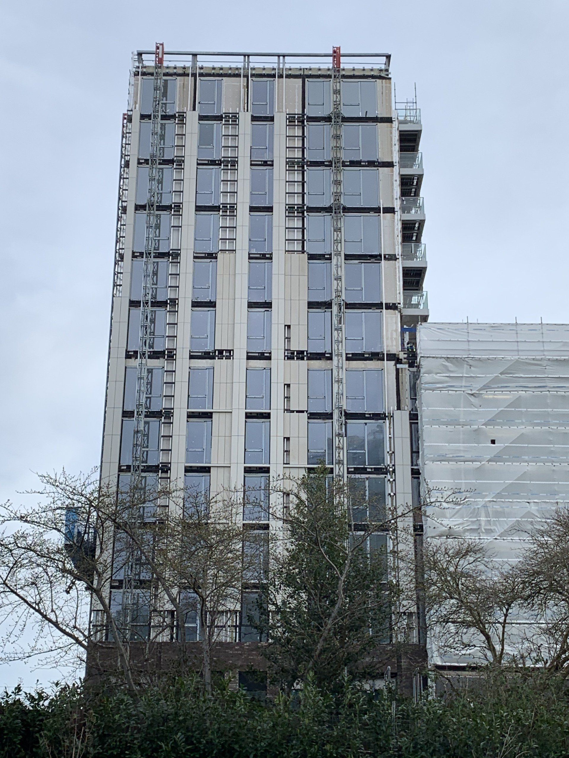 Mixed use residential scheme ranging from 3 to 13 storeys, using modern building methods utilising prefabricated volumetric modular units. Installing façade package including curtain walling, doors, louvre panels, GRC and terracotta cladding, and all associated feature metalwork items.