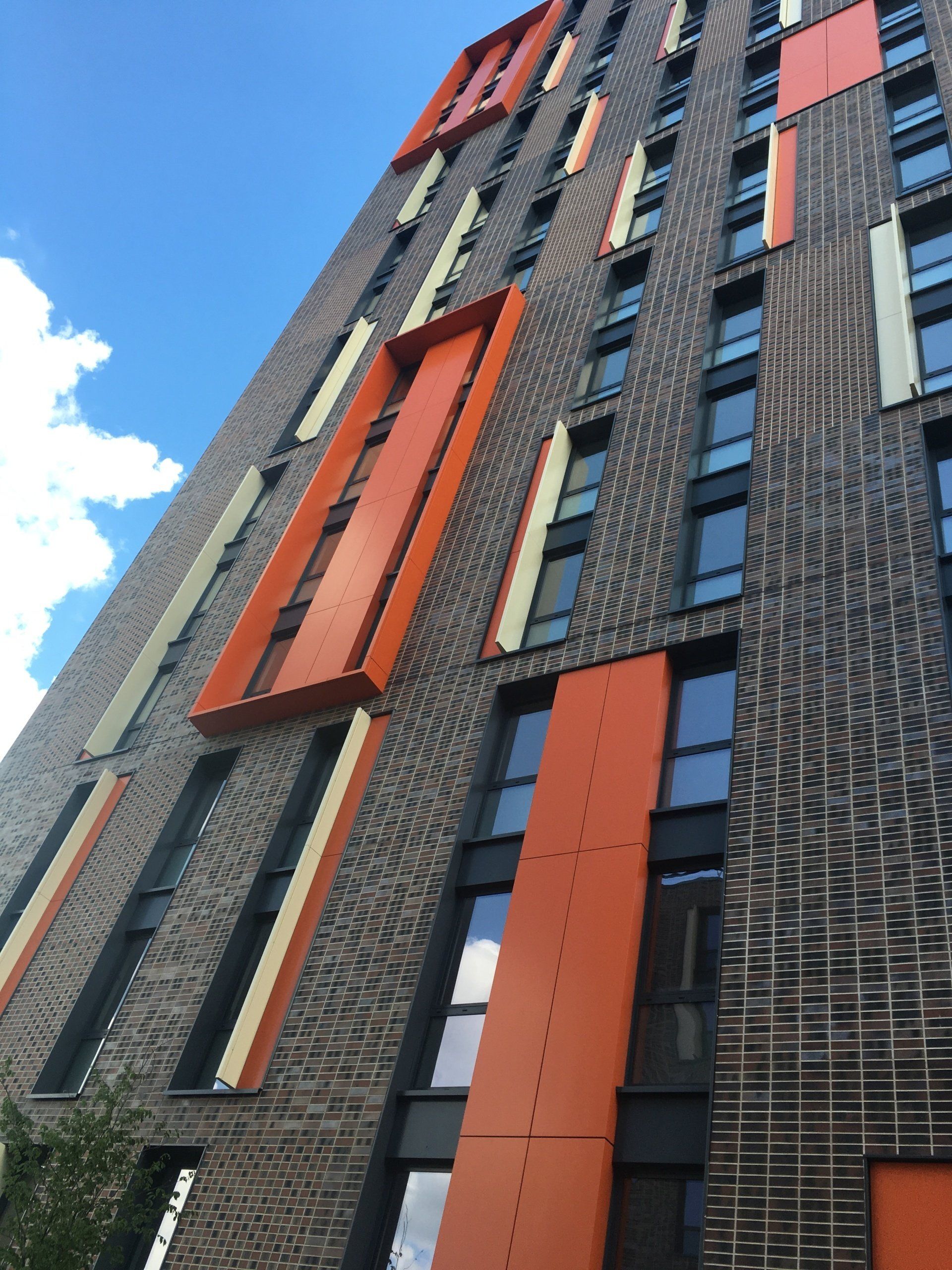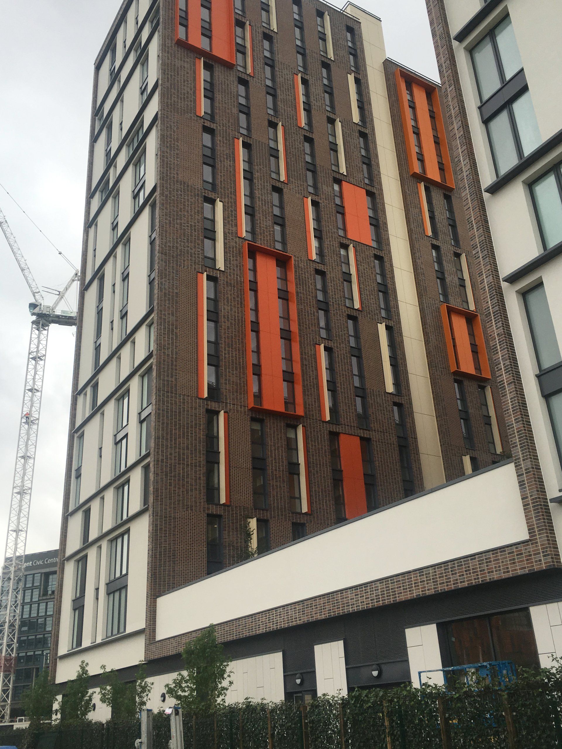 The client was keen to utilise modern methods of construction for this student accommodation project located in Wembley, with the building formed from prefabricated volumetric modular units. Including installation of aluminium windows, curtain walling, brick cladding, and feature metalwork.