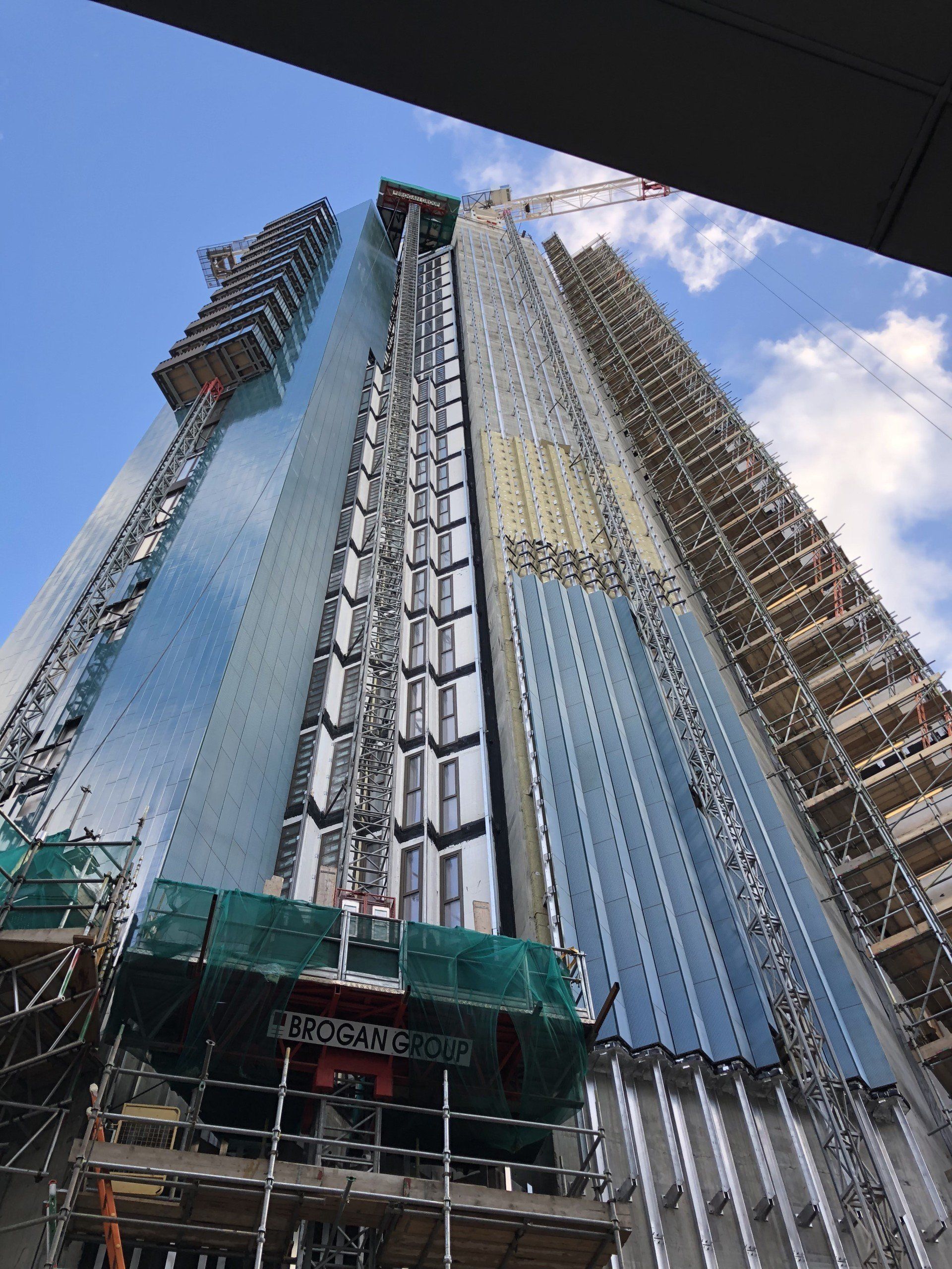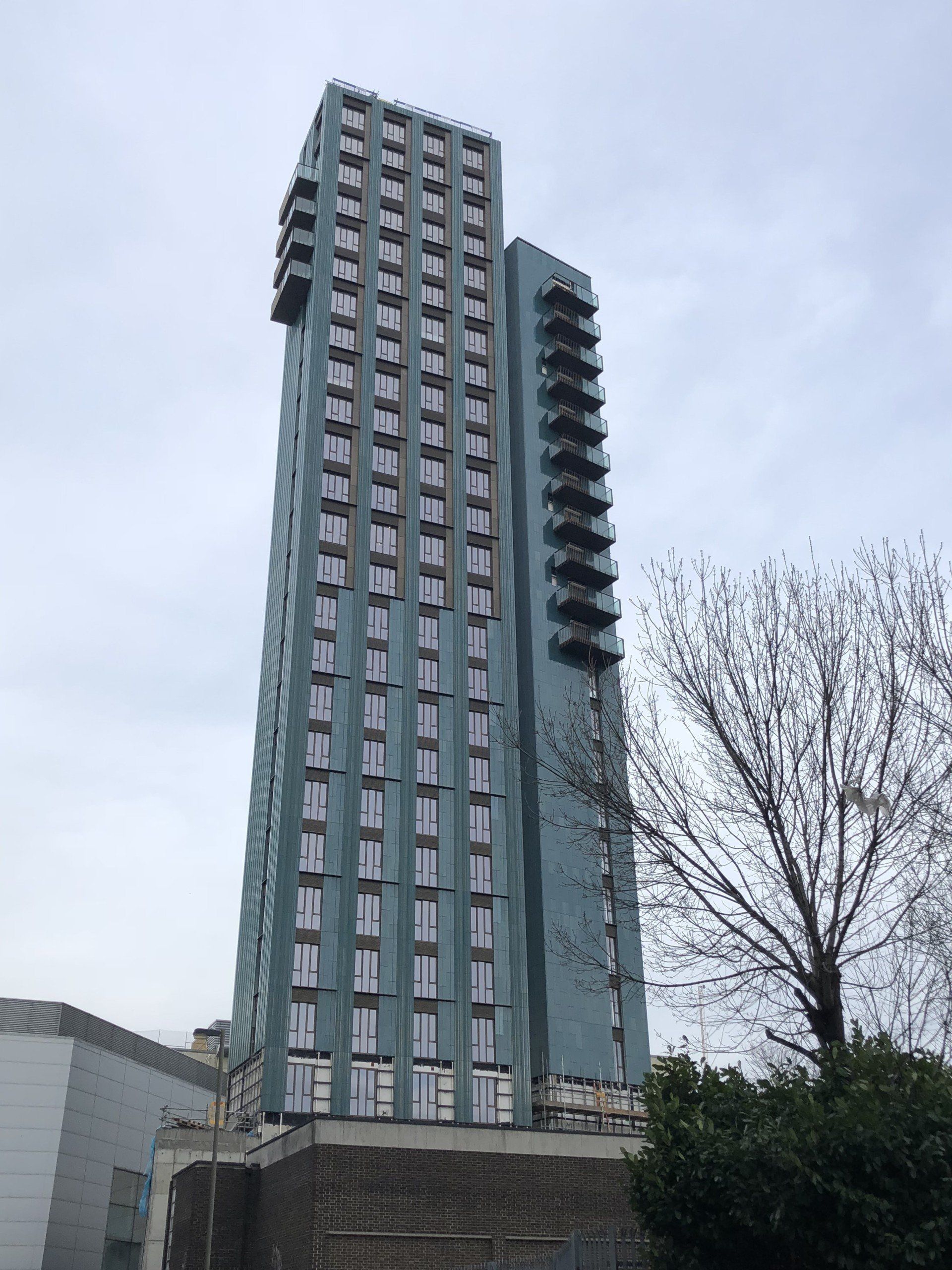 Installing building structure of 27 storey residential tower from prefabricated volumetric modular units and installation package of the high specification glazed terracotta cladding, plus all associated feature metalwork and glazed balustrades.